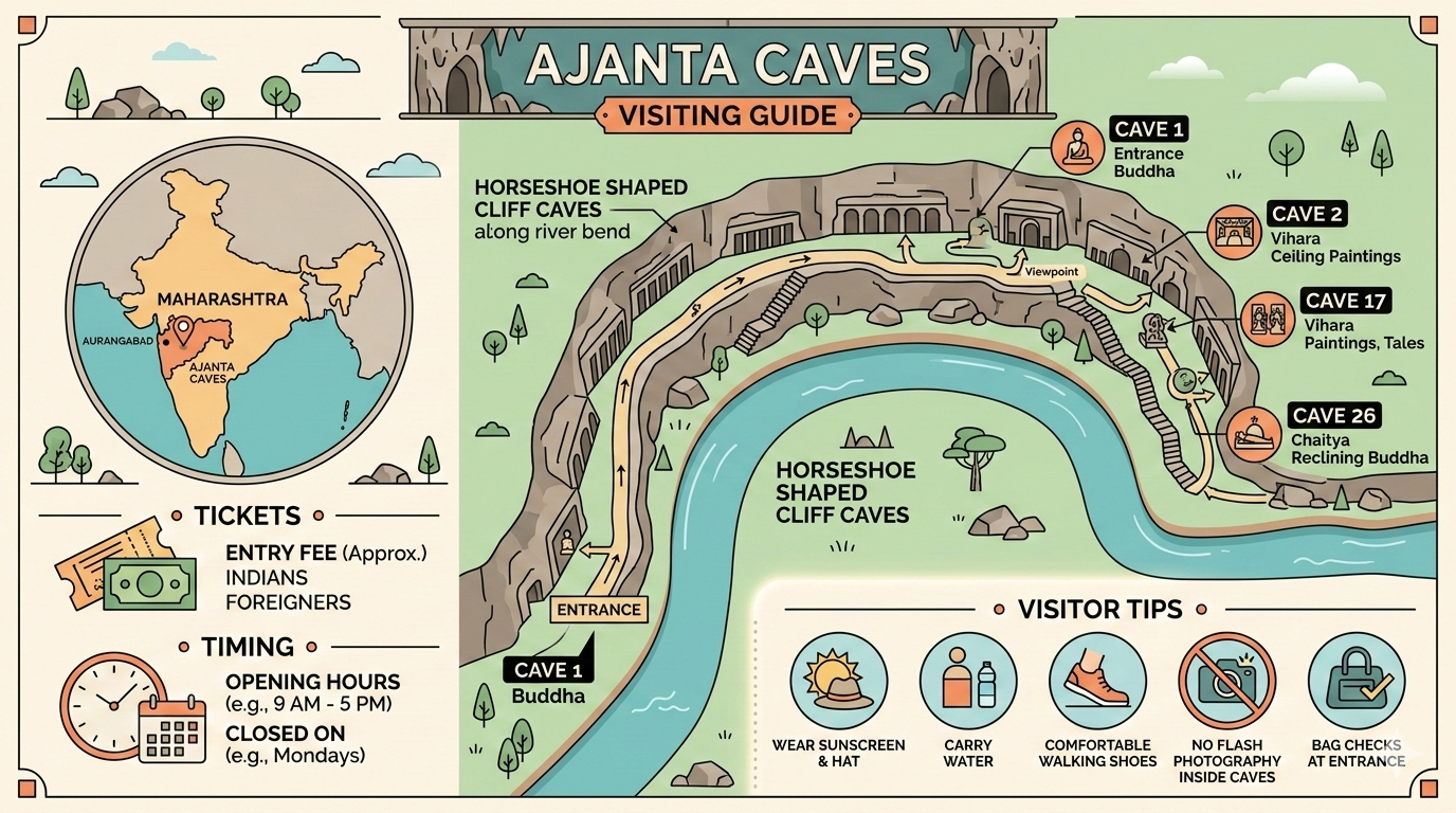 This Ajanta Caves visiting guide explains tickets, timings, best season to visit, travel routes, and expert insights that help you explore one of India’s greatest cultural treasures with confidence.